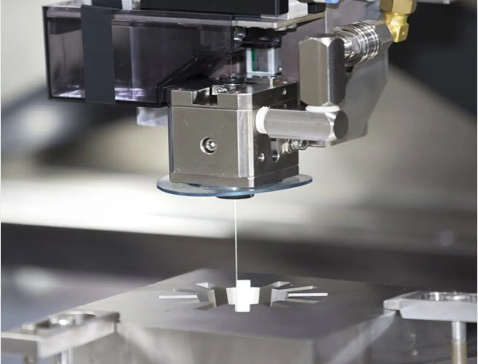 During the process, the wire electrode remains under precise tension while moving through the workpiece, which is submerged in dielectric fluid. Each precisely controlled spark locally melts and vaporizes microscopic amounts of material, enabling the creation of intricate shapes and fine details in even the hardest metals.